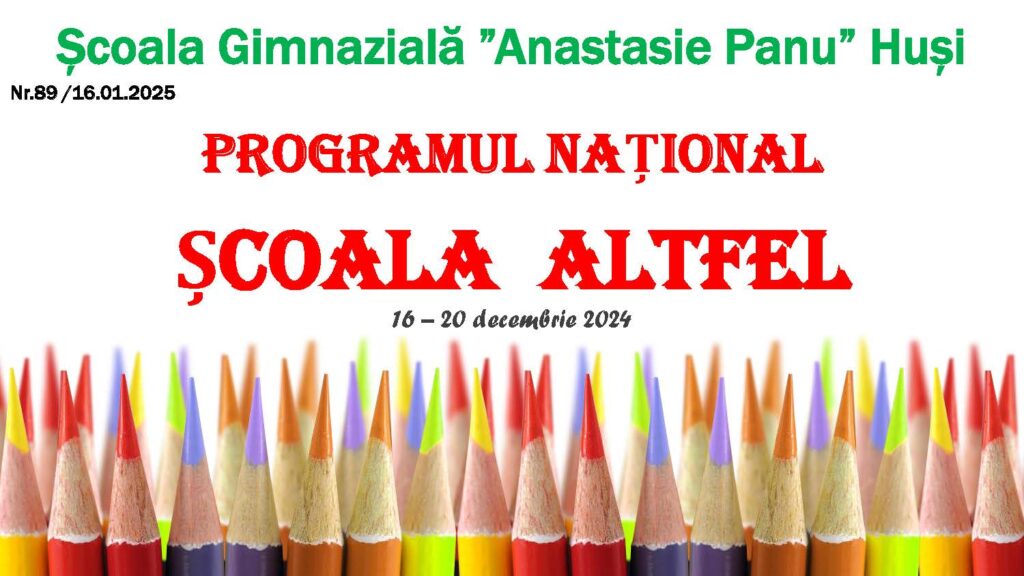 Școala altfel în ȘCOALA GIMNAZIALĂ ”ANASTASIE PANU” HUȘI 2024-2025